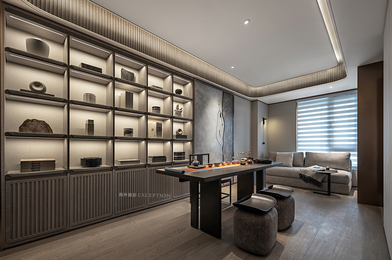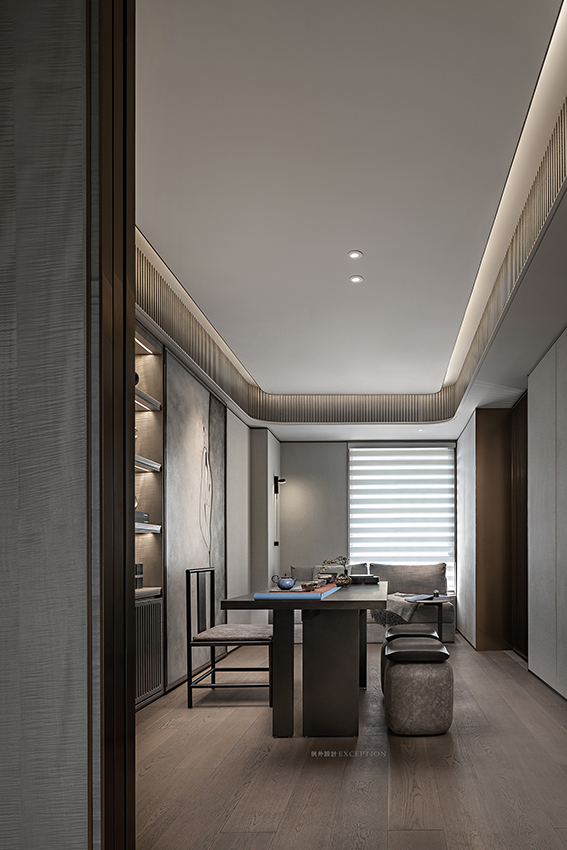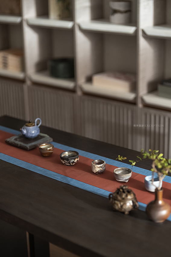 在一片低調(diào)不張揚(yáng)的清悠中,忽然被漸入一抹澄澈的藍(lán),點(diǎn)亮心頭的靈感之泉,一陣風(fēng)拂過(guò),茶煙裊裊升騰,靈謐而悠遠(yuǎn),談笑聲漸息,似又聽(tīng)見(jiàn)書(shū)頁(yè)翻動(dòng)的沙沙聲,時(shí)而眉頭微蹙,時(shí)而恍然展顏,空間所給予的遠(yuǎn)不止于此,更是內(nèi)心的旁騖盡散,通透詩(shī)意。
