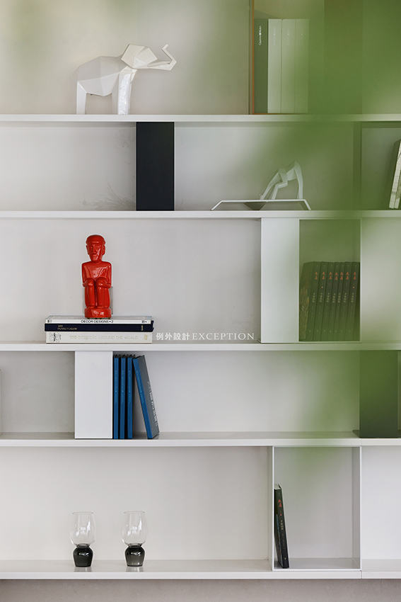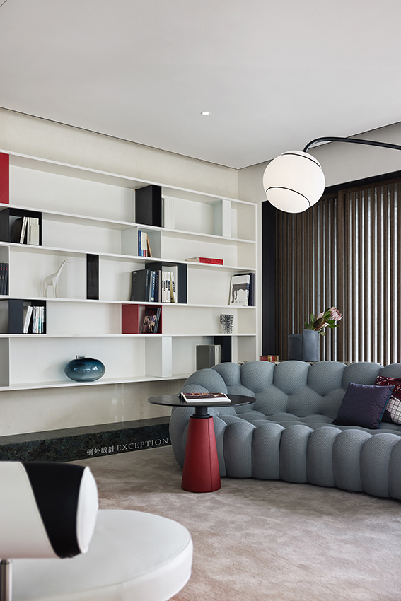 紅棕色漸變地毯鋪就一室的俏皮與優(yōu)雅,整面米色開放式櫥柜,滿足了日常的展示與收納場(chǎng)景。書櫥中的動(dòng)物飾品呼應(yīng)著隨處可見的自然氣質(zhì),不經(jīng)意間一瞥,便能激發(fā)出生活中的幸福靈感。