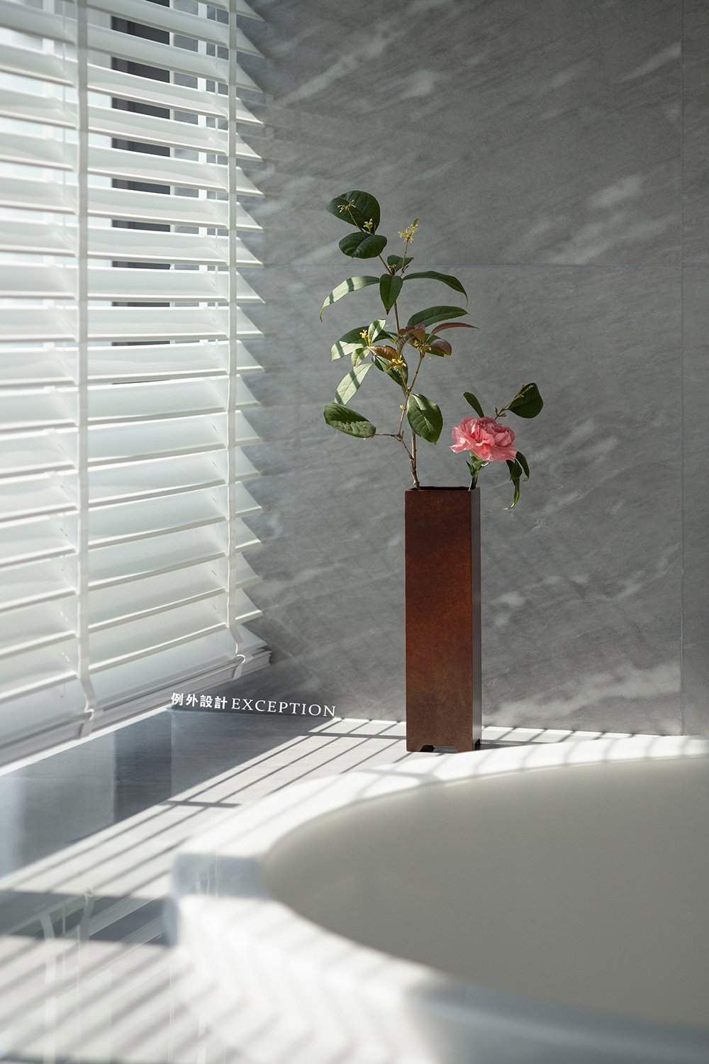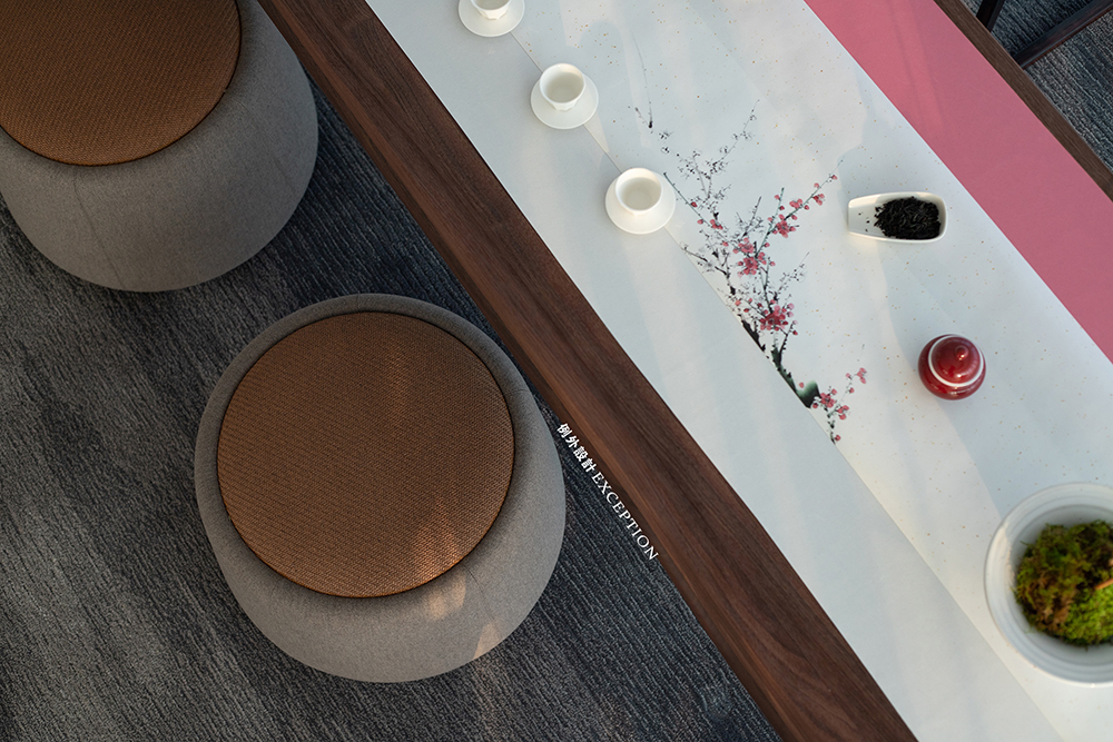 從晨光熹微、清風(fēng)拂面到落日余暉、海上薄暮,一天的光景里,Z小姐可以沉浸式中式插花,亦或是坐在一旁感受瑰麗的海景,也可以在裊裊茶煙里暢享葉片在大自然所歷經(jīng)的風(fēng)物旅行,淡墨疏梅,光影繾綣間,也有一份清雅自若的暢快。