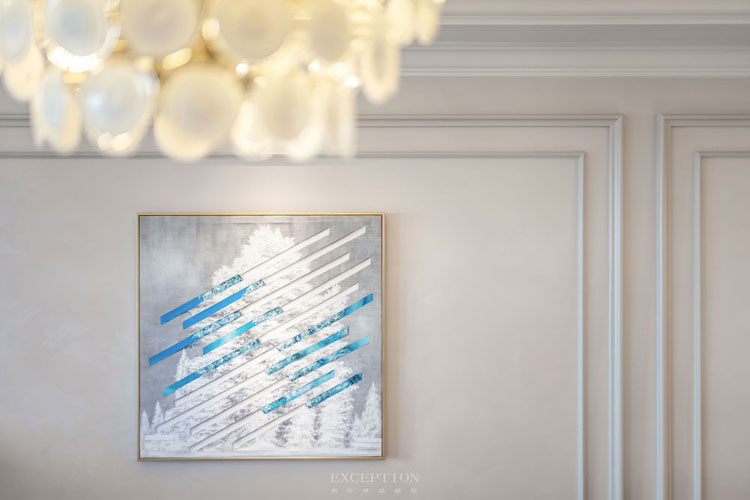 沒有繁多的裝飾,更顯空間的通暢大氣。當(dāng)代藝術(shù)被融入到掛畫、擺飾、家具的每一處細(xì)節(jié)里,經(jīng)過反復(fù)地思考,重組、搭配,構(gòu)設(shè)出強(qiáng)烈的視覺符號來感應(yīng)空間的安靜純粹的生活氣質(zhì)。