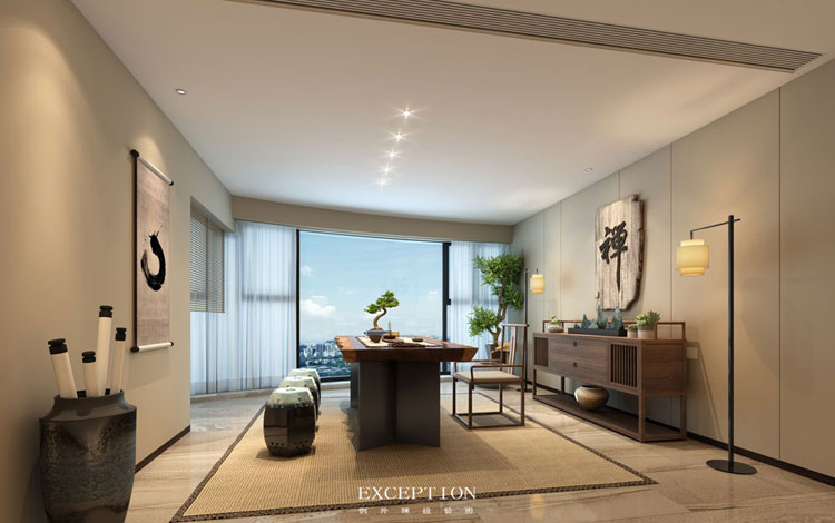 除了精心打造出習(xí)字、品茶的閑適意境、空間沒有多余的修飾,纖秀線條框畫的白墻,空濛煙雨霽月藍(lán)的鼓凳,木飾掛件年輪,圈出禪意的心境與變遷,無形之中將東方的氣韻植入空間中,所有的設(shè)計(jì)與陳設(shè)都是設(shè)計(jì)師在對(duì)居者生活方式及喜好的審度后進(jìn)行的選擇,既不失美感,又兼具人文氣息。