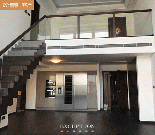 3、改造后樓梯一側(cè)以香檳金屏風(fēng)營(yíng)造虛實(shí)結(jié)合,隔而未隱的東方意境。