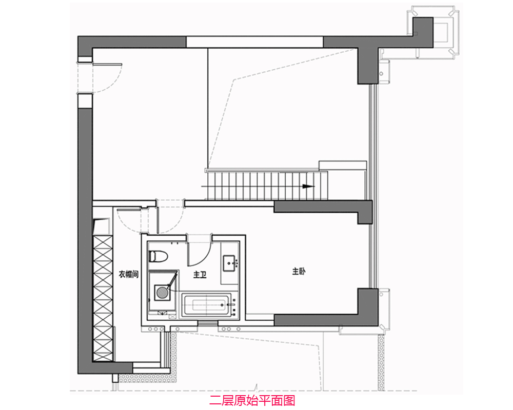 1、設(shè)計(jì)將原格局中左邊的樓梯改造到右邊,并把原結(jié)構(gòu)中樓梯下方的門改造為掛畫裝飾型推拉門,增加樓梯拆除后的美觀性。