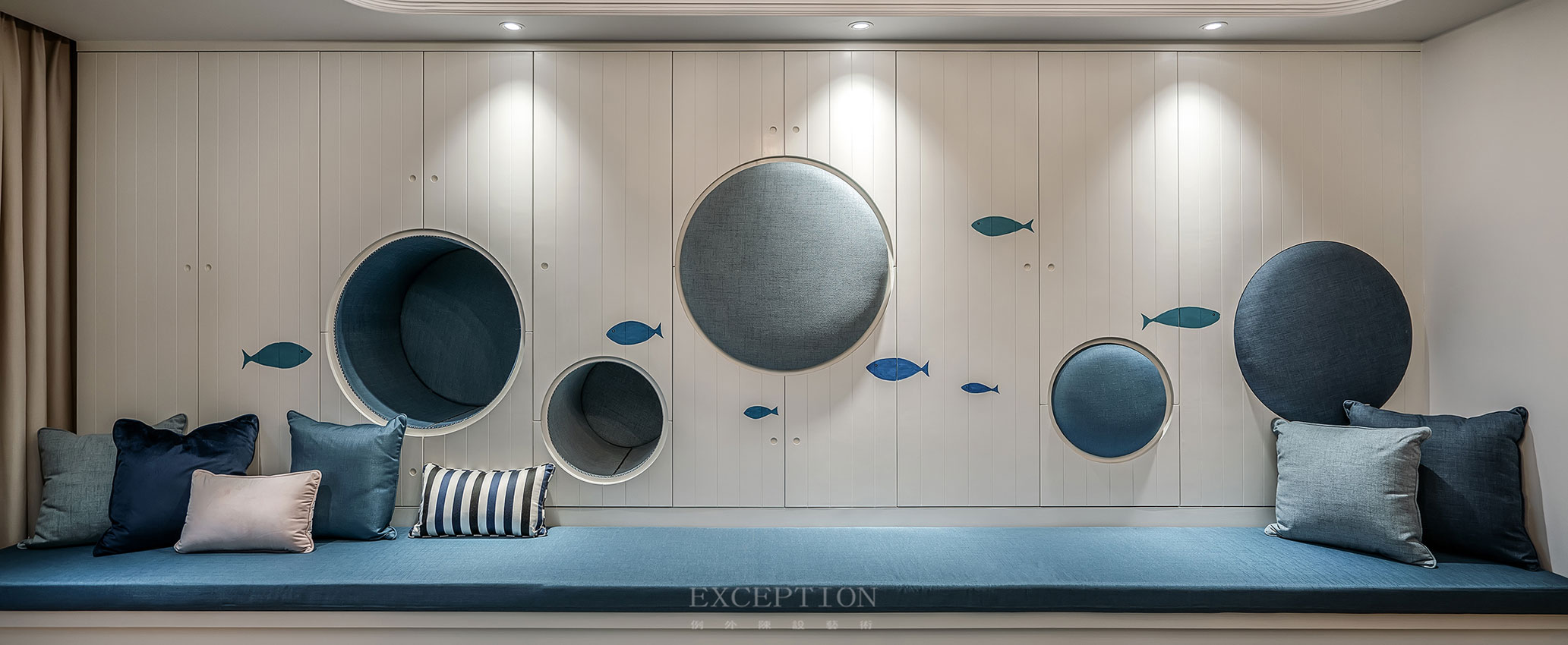 縱觀整個設(shè)計,以海洋元素貫穿全局,進而衍生出不同空間的品調(diào)來詮釋生活。在本案中,對于孩子成長空間的關(guān)注值得思考。
