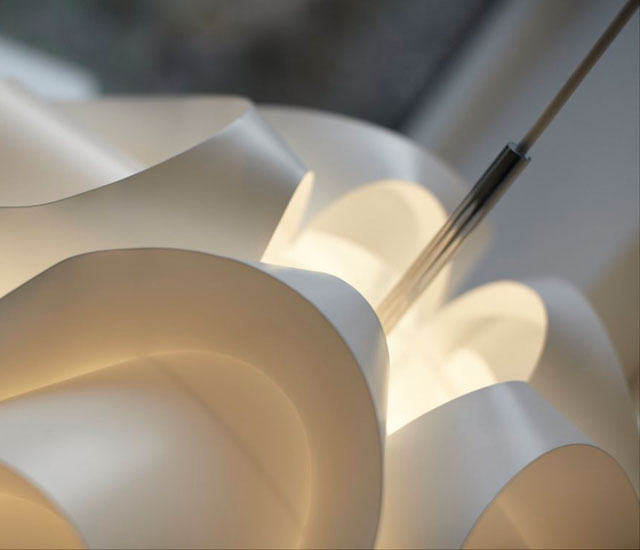 自然舒展的波浪形外觀,賦予燈光神奇的動感,其中不乏精巧的角度計算與過硬的褶皺工藝。