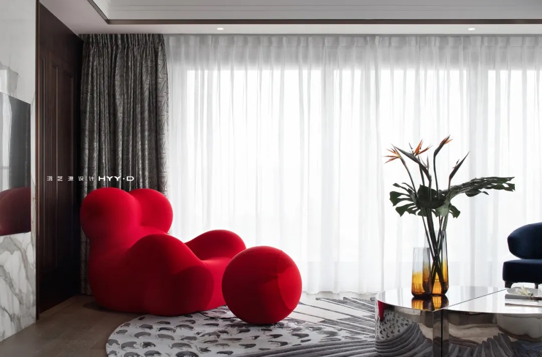 一個待得住的家,每一個角落都有著讓人能夠放松的理由。媽媽的懷抱以最柔軟的姿態(tài)散發(fā)著母親般的溫暖與安全感,紅色熱情,如同生活的熱鬧斑斕,那是一種可感知的暖意。藍色單椅優(yōu)雅紳士,紅藍撞色融入時尚的審美趣味,家人小憩、閱讀,靜靜陪伴也是一種無聲的默契。