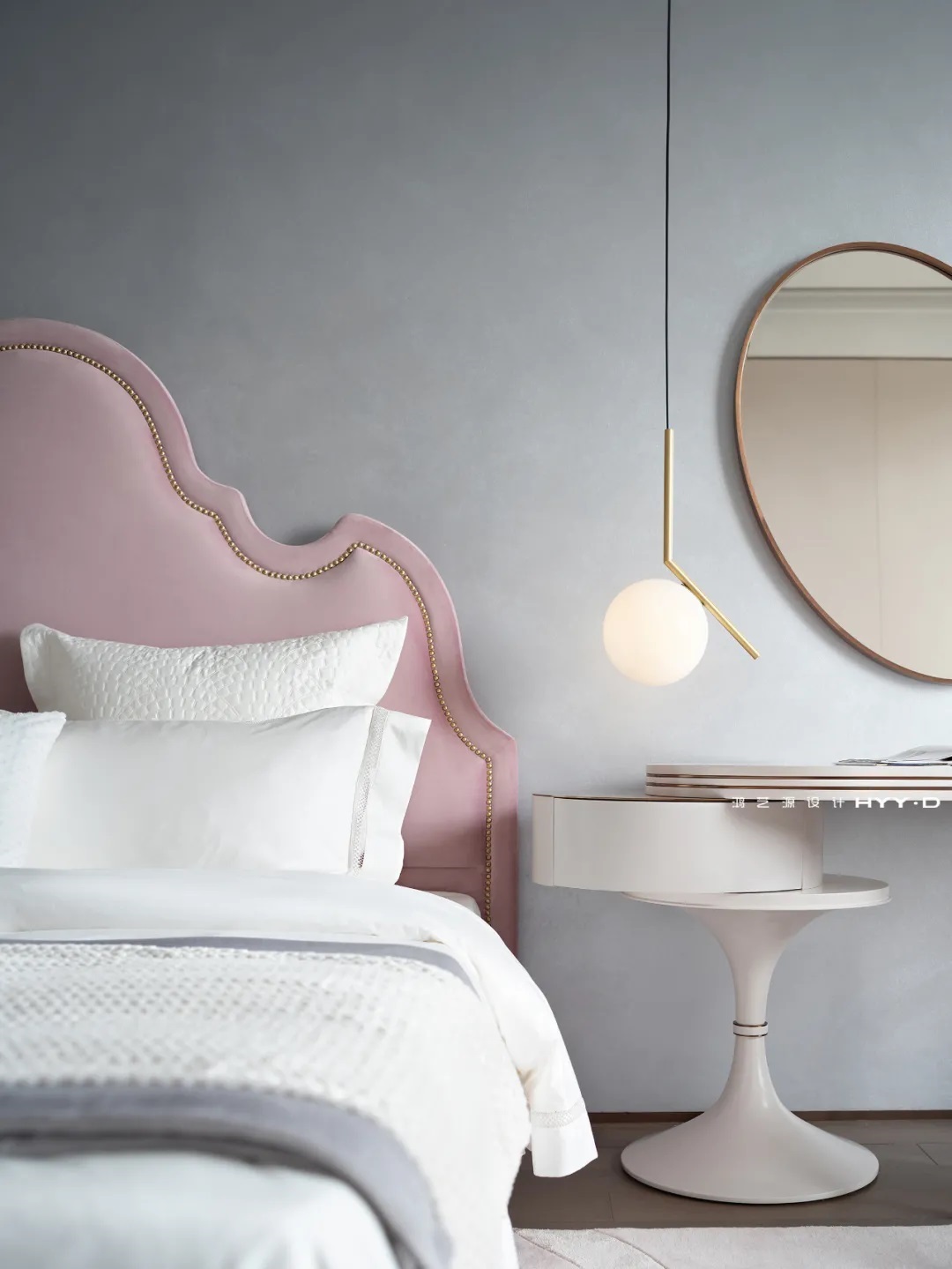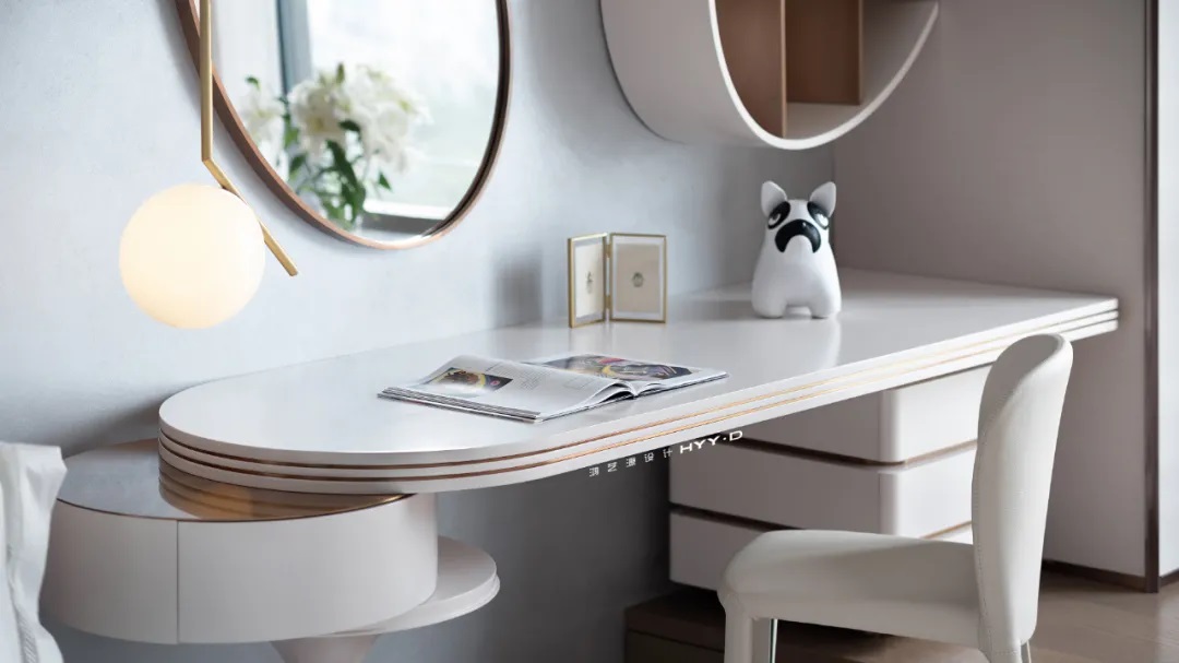 空間的自由是設(shè)計師需要考慮的重要課題,是居者想象力與審美品調(diào)的自由,粉得柔美,白得純凈,是00后小仙女夢想中的小世界。當(dāng)被問及最喜歡哪個空間時,她笑容洋溢地給出了答案:臥室。那幅定制的指紋畫便是她最個性的展現(xiàn),與一旁的橢圓妝鏡遙相呼應(yīng),不同的材質(zhì)混搭,最終通往內(nèi)心對美好生活的熱愛。