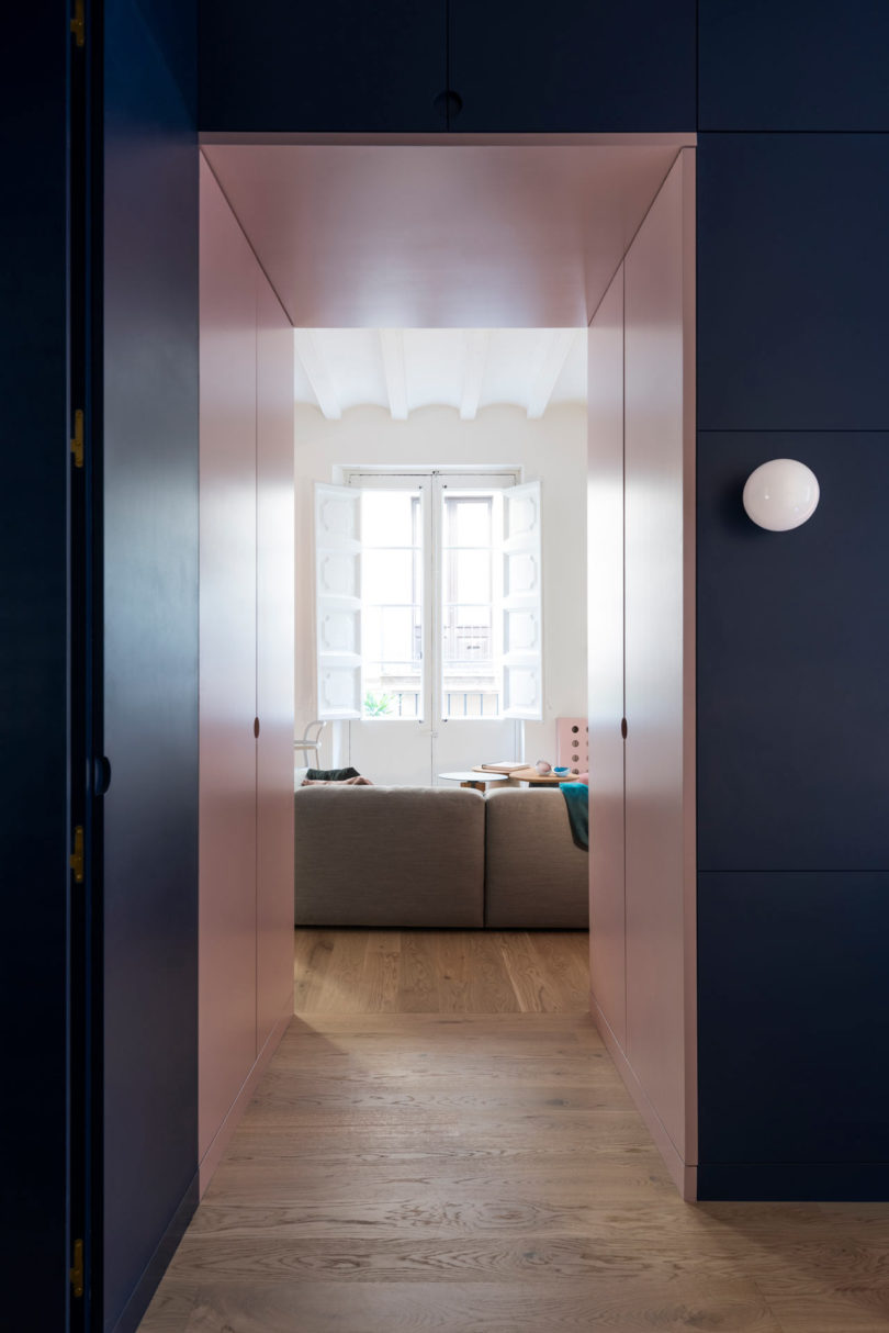 這間公寓位于巴塞羅那最古老的社區(qū)之一Born,總共65平米。居者是一個年輕女性,雖然是古老的社區(qū),但居者也有著自己對于生活的品位,于是聘請了Colombo and Serboli Architecture (CaSA)來進(jìn)行軟裝設(shè)計煥新改造。