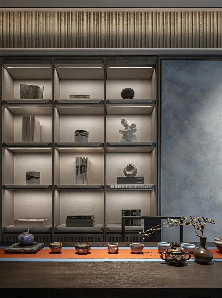 在一片低調(diào)不張揚(yáng)的清悠中,忽然被漸入一抹澄澈的藍(lán),點(diǎn)亮心頭的靈感之泉,一陣風(fēng)拂過,茶煙裊裊升騰,靈謐而悠遠(yuǎn),談笑聲漸息,似又聽見書頁翻動(dòng)的沙沙聲,時(shí)而眉頭微蹙,時(shí)而恍然展顏,空間所給予的遠(yuǎn)不止于此,更是內(nèi)心的旁騖盡散,通透詩意。